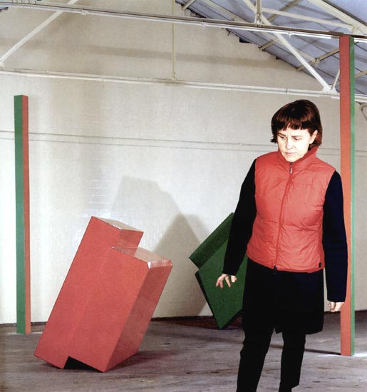 (Dora in front of Phillip King's "Call", Juda Rowan Gallery, London 1967)