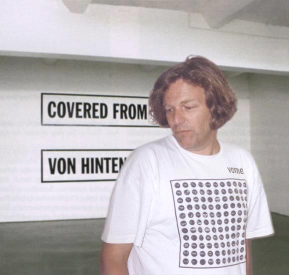 (Peter in front of Lawrence Weiner's "Steel Pennies ..."